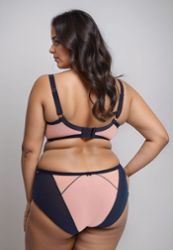 Das halb gepolsterte Design mit voller Abdeckung und diagonalem Ausschnitt garantiert optimalen Halt für große Brüste, ohne die Ästhetik zu beeinträchtigen. Die mit zartem Stoff gefütterten Körbchen schonen die empfindliche Haut, während die umschließenden und seitlichen Bügel diese speziell für große Größen entwickelte Konstruktion bieten.