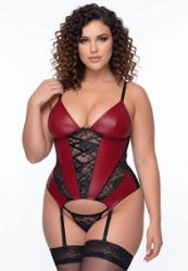 rotes Bustier große Größe Leder-Effekt Spitze Netz String sortiert