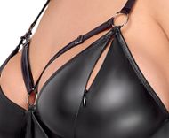 Dieses Kleid in Übergröße aus elastischem Kunstleder ist mit Armschlingen verziert. Es liegt an Ihnen, zu welchen verbotenen Spielen es Sie führen wird ...