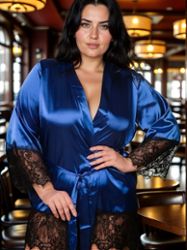 Kimono in Übergröße aus leicht elastischem Satin und Spitze. In sehr elegantem Merlot-Rot.
