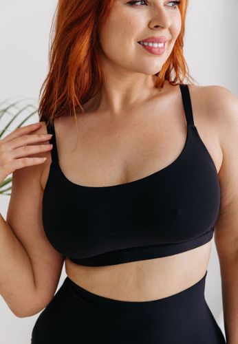 Entdecken Sie diesen schwarzen BH ohne Bügel, der großzügige Kurven mit zeitloser Eleganz betont.