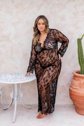 Langes Babydoll in Übergröße mit langen Ärmeln, ganz aus Spitze. Sinnlich und leicht zu tragen.