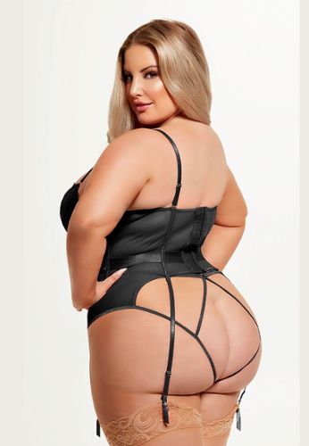Ein weicher, bequemer opaquer Bodystocking in großen Größen mit wunderschönen integrierten Spitzen-Strumpfhaltern. Der Look eines sexy Strumpfhalters mit dem Komfort eines Bodystockings.