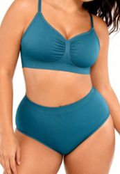 Reggiseno blu petrolio arricciato sostegno morbido invisibile taglie forti