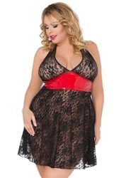 Ολόσωμο babydoll με φωτεινή κόκκινη ζώνη κάτω από το μπούστο.