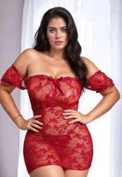 Negligé aus elastischer Spitze, Schleife am Mittelsteg, breiter Kragen und kleine fallende Ärmel.