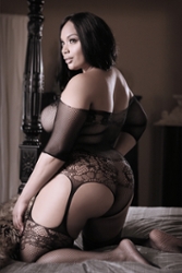 Ένα κορμάκι plus-size σε συνδυασμό με πλούσιες κάλτσες με αποτέλεσμα ζαρτιέρας για μια πρωτότυπη εμφάνιση.
