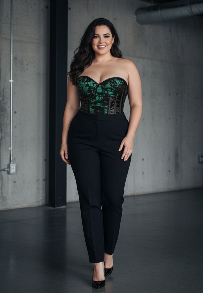 Αυτός ο overbust κορσές από σατέν πράσινο σμαραγδί με μαύρη δαντέλα είναι χειροποίητος για να αναδεικνύει τη σιλουέτα. Διακριτικό πλαϊνό φερμουάρ για κομψότητα & πρακτικότητα.