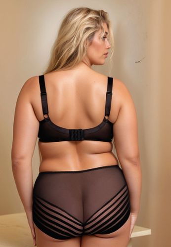 Découvrez ce soutien-gorge noir sans armatures qui sublime les courbes généreuses avec une élégance intemporelle.