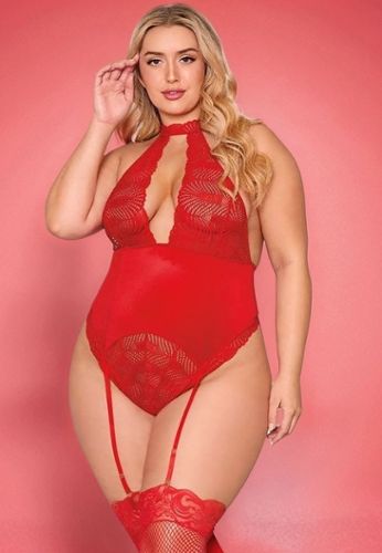 Αφήστε τον εαυτό σας να παρασυρθεί από αυτό το teddy με καλτσοδέτες από ελαστική δαντέλα και βελούδο. Τολμηρό κόψιμο, τέλεια εφαρμογή και εκλεπτυσμένες λεπτομέρειες για μια ακαταμάχητη εμφάνιση.