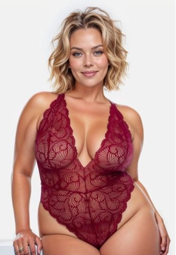 Ανακαλύψτε αυτό το σύγχρονο κορμάκι από κυματιστή δαντέλα που αναδεικνύει τις πλούσιες καμπύλες σας με το τολμηρό βαθύ ντεκολτέ και την αισθησιακή ανοιχτή πλάτη.
