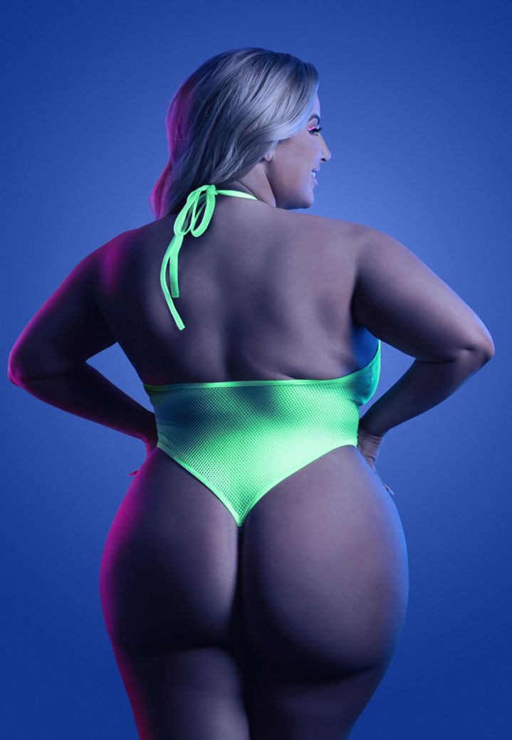 αυτή η επαναστατική δημιουργία από φθορίζουσα κεντημένη δαντέλα και ελαστικό πλέγμα αγκαλιάζει και αναδεικνύει τις φυσικές σας καμπύλες.