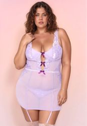Romantic lavender garters plus size babydoll
