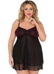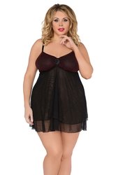 Black and dark red bi-material plus size nightie