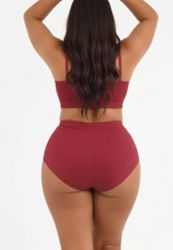 A bordeaux high-waist seamless brief designed for everyday comfort: soft shaping with light tummy control, ultra stretchy yarns and a skin-friendly feel. It features an antibacterial crotch, full coverage, and extra gathered fabric at the back to create a naturally peachy hip look.