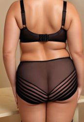 The perfect fit gently hugs the hips and buttocks, creating a harmonious silhouette that discreetly enhances your generous curves. Black geometric lace adds a striking yet subtle aesthetic dimension, perfect for everyday wear. The cotton crotch insert guarantees the all-day comfort you're looking for, proving that practicality and elegance can go hand in hand.
