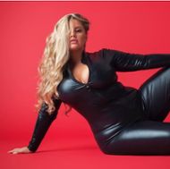 Sumptuous from head to toe with this plus size open jumpsuit in high-quality elastic faux leather.