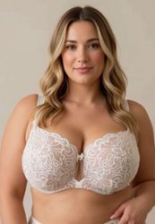 Ecru semi-soft bra FB cut higher gore very plus size firm support