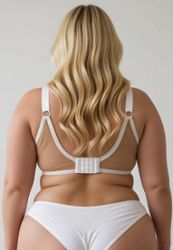 It fastens with a back closure, making it practical for everyday wear, and the straps are adjustable along their full length so you can fine-tune the fit. In larger sizes (depending on size), straps may feature front clips instead of hooks; both versions offer a crossover option.