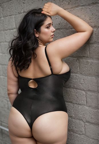 Give your lover a sultry surprise in this exclusive plus size teddy. Sheer lace cups, bust adorned with fine straps and O-ring accents, adjustable spaghetti straps, and a lace racerback with O-rings. Sheer mesh and lace bodice, open back panel with hook and eye closure, and cheeky cut back.