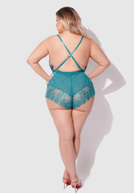 The Mila Mesh & Eyelash Lace High Slit Romper Teddy is a sexy and timeless teddy that combines sweetness and sensuality. Plunging neckline, sheer mesh, delicate eyelash lace details, high slits, adjustable criss-cross back straps. Breathable cotton liner for optimal comfort. Available in plus sizes and standard sizes.