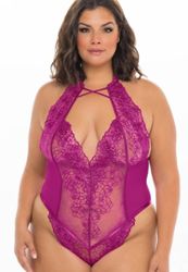 Subtlety and romance for a plus size bodysuit in an unusual color.