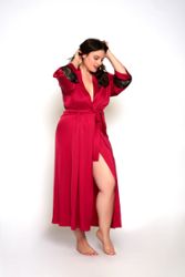 Kimono Long Satin Lace Luxury Plus Size - Diva's Boudoir