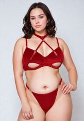 Break away from your usual lingerie habits and dare to wear this highly original set in velvety stretch fabric.