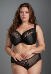 The cup features one horizontal and two vertical cut-outs for a perfect fit. The lower part of the cups is made of Simplex fabric, offering suppleness and support, while the upper part features high-quality lace, adding a touch of refinement.