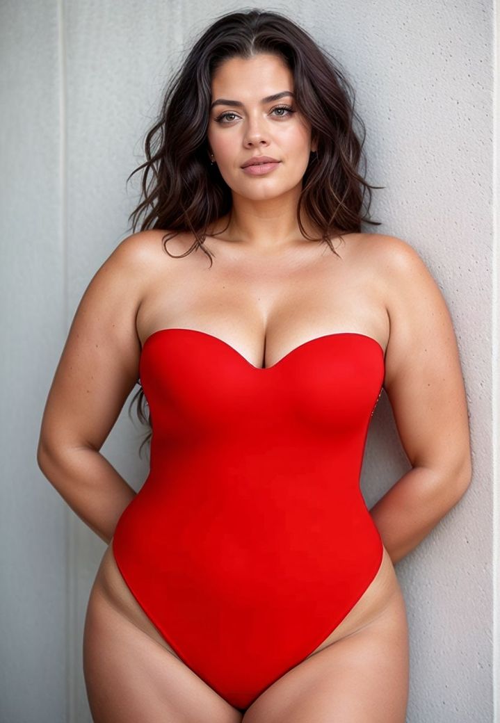 An ultra versatile red shapewear bodysuit: one-piece molded cups with underwire for support, anti-slip silicone for confident strapless wear, plus a double-layer design that smooths the waist and abdomen with comfortable firmness.