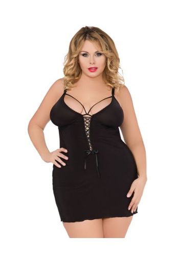 Fully opaque plus size babydoll in a flattering cut that enhances your bust and legs.