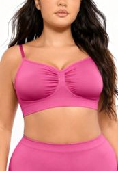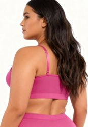 A pink bra that blends comfort and confidence. The ruched front creates a naturally flattering shape, adjustable straps keep the fit comfortable, and high side panels help smooth the back line under clothes.