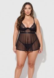 The babydoll is designed to offer a perfect fit while accentuating your natural curves. Carefully crafted from delicate black lace, this set adds a touch of glamour to your lingerie collection.