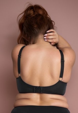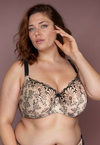 Black and beige plus size panties, matching the bra from the same collection.