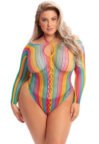 A sensual bodystocking with animal pattern and intimate cutouts. Piece with fitted short bike, sophisticated animal pattern, front and back cutouts that accentuate your most valued assets, for a wild and irresistible allure.