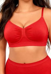 This red bra is made to do the work while keeping the vibe effortless. The center ruching gives a naturally flattering shape, and the buttery-soft fabric sits close to the body with a true barely-there feel.