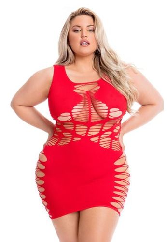 This matte-look body-hugging dress revolutionizes seduction with its stretchy chest openings and adjustable straps with integrated nipple covers.