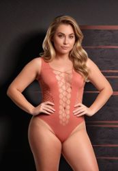 A very pretty plus size bodysuit in quality bodystocking knit, suitable for all body shapes
