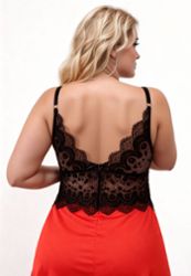 Babydoll Paradisio con encaje negro y satén rojo en talla grande