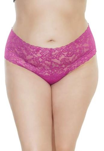 Un tanga de encaje de cintura alta que muestra tu vientre. Se muestra aquí en color malva.