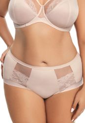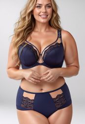 Un bonito juego de texturas para esta braguita de talla grande, a juego con el sujetador de la misma colección.