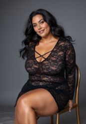 Sensual encaje con bonitos tirantes cruzados sobre el pecho. Un picardías sexy y desenfadado de talla grande.