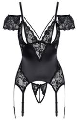 - Tipo: Conjunto camisón liguero + tanga abierto