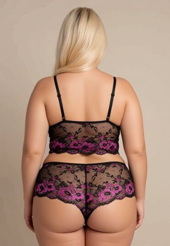 Una bonita mezcla de materiales para este corpiño largo de talla grande con aros.