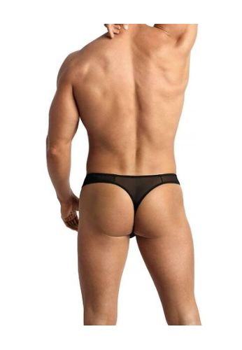 Una braguita negra que juega con contrastes: encaje delantero, satén trasero, y una cadena de strass muy sexy que corre por la espalda. Amplia cintura elástica ajustable en los laterales para un ajuste perfecto. Elegante, cómoda, terriblemente deseable.