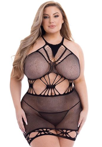 Este bodystocking de rejilla diamante revela tu sensualidad con sus estratégicos cortes y atrevidos lazos.
