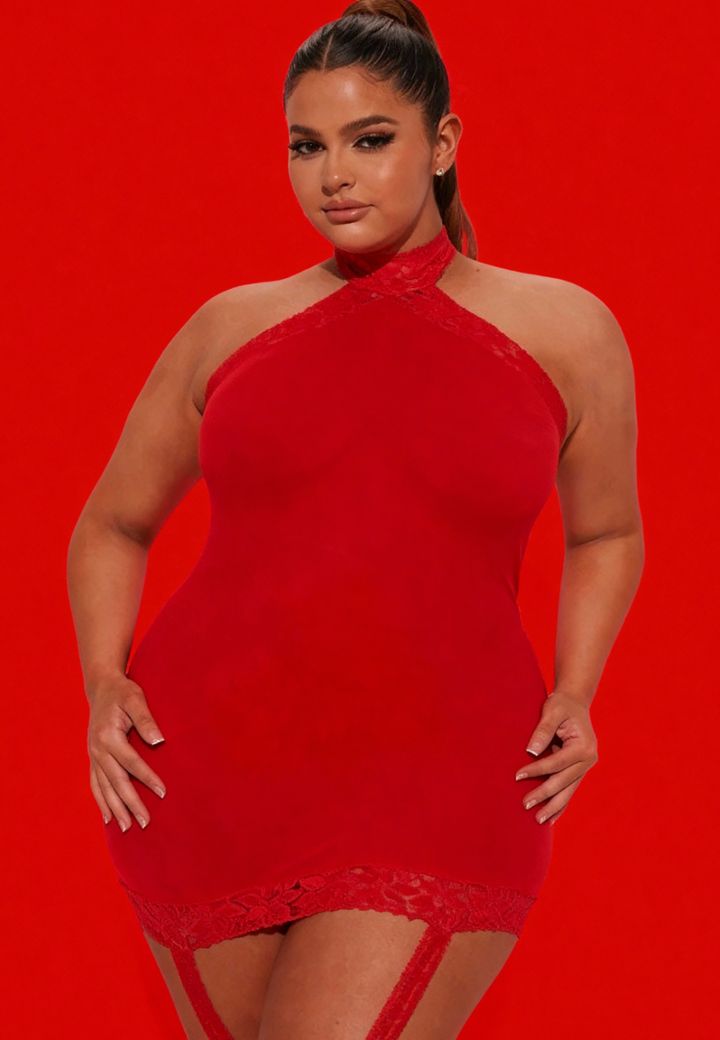 Suba la temperatura con este body de rejilla roja que atrapa la luz gracias a sus strass brillantes. Incluye esposas a juego para un conjunto coherente, glamuroso y muy favorecedor.