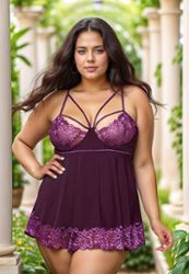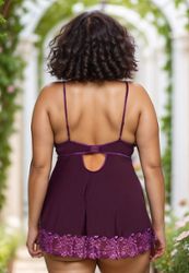 Un color suntuoso y un tejido muy ponible para este camisón de talla grande y su tanga a juego.