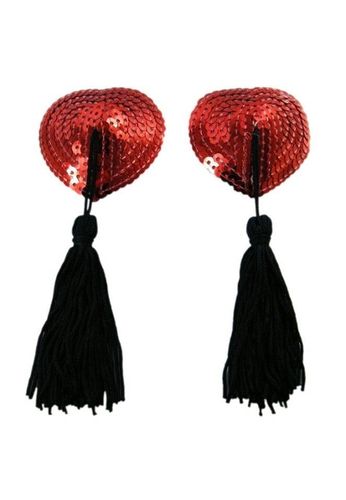 Cubrecabezas adhesivos en forma de corazón con borlas.