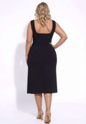 Vestido negro London con abertura alta, talla grande
